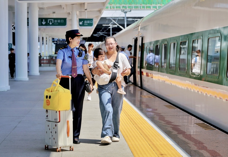 长三角铁路加大假期运输服务供给,提升旅客出行体验。延长候车服务时长,上海站、上海虹桥站、上海南站、杭州东站、杭州西站、南京南站、合肥南站、宁波站等车站按需实行通宵开放。加强路地交通联动,上海、杭州、无锡等枢纽同步联动公交、地铁延长运营时间、加密班次,连云港站与长途汽车总站开展服务接力,畅通出行“最后一公里”。强化重点旅客服务,依托南京站“158”、杭州站“之江心驿”、无锡站“太湖明珠”、宁波站“5590”等上铁雷锋服务站,为老幼病残孕旅客提供“一站式”精准服务。文化活动精彩纷呈,上海虹桥站“迎国庆 庆中秋”主题快闪、徐州站“和国旗合影,向祖国表白”打卡、南京站“灯火里的中国”非遗展示等活动吸引旅客驻足参与,共同为伟大祖国祝福。