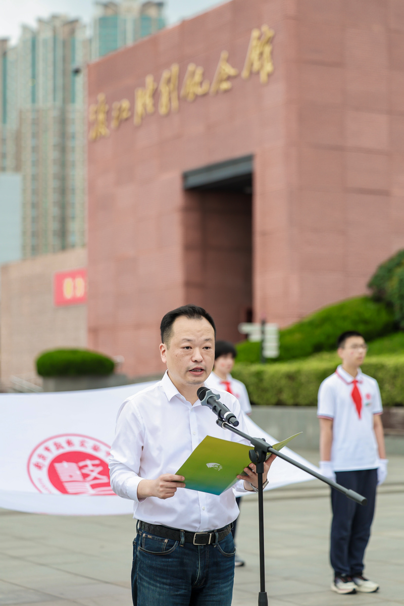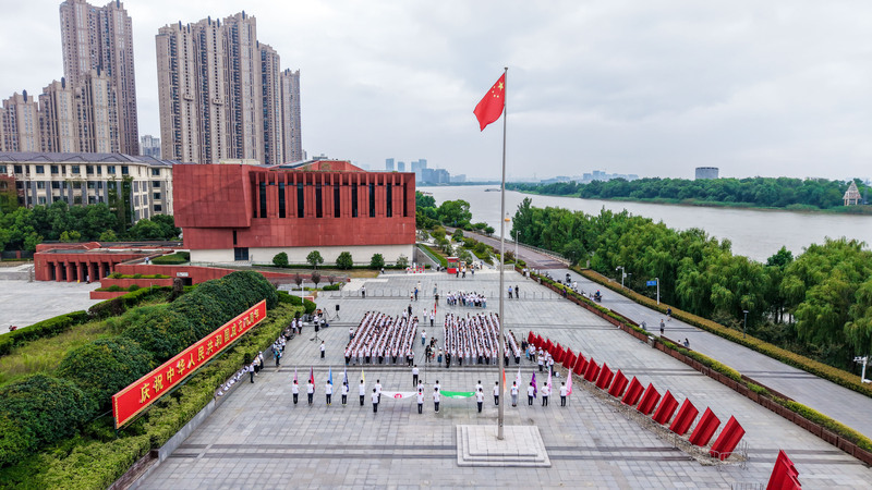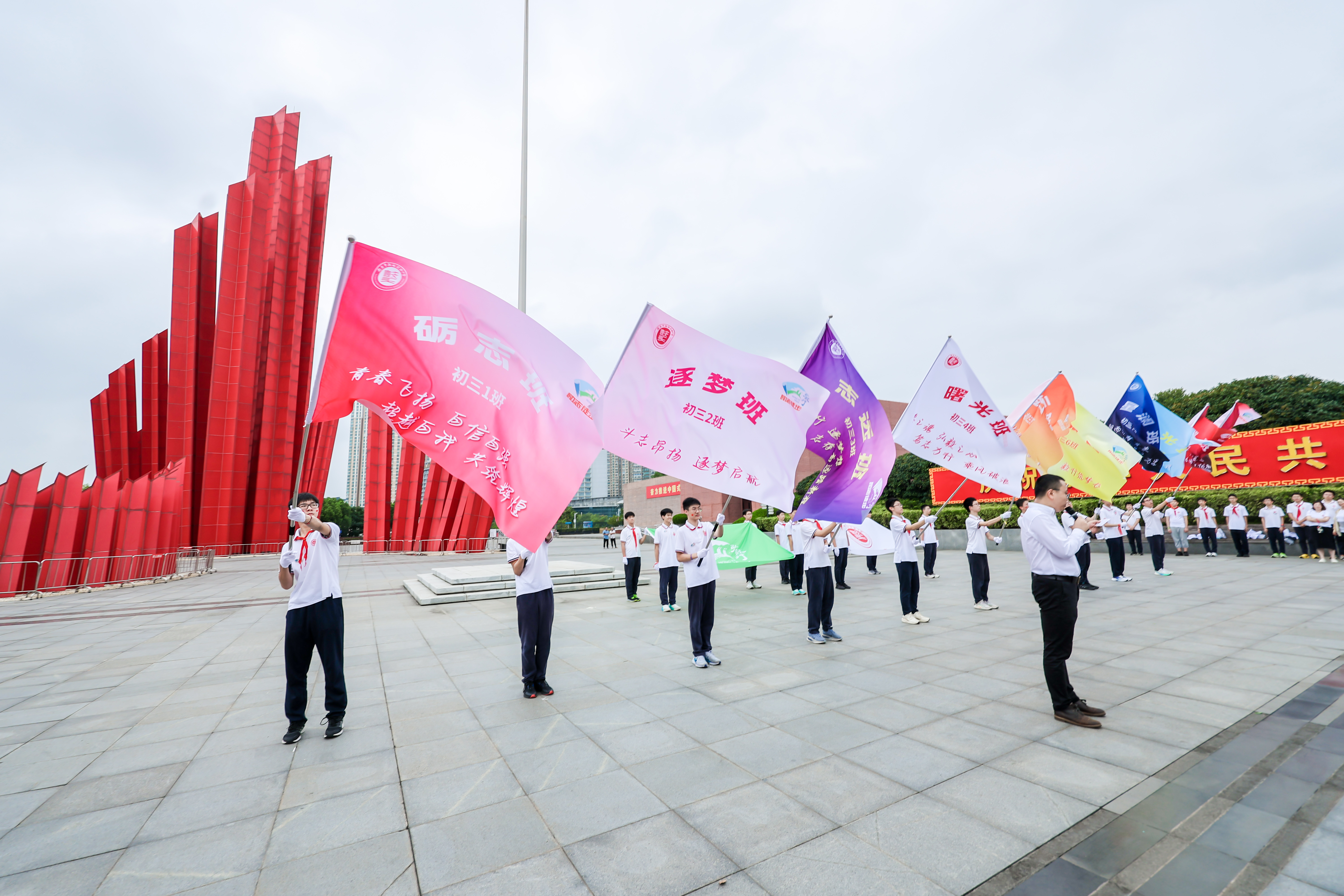 下午2点,秋阳朗照,江风轻拂,全体师生在渡江纪念广场举行了庄严而热烈的“出征仪式”。五星红旗下,同学们光荣退队,并以青春的名义许下“强国有我”的铿锵誓言。