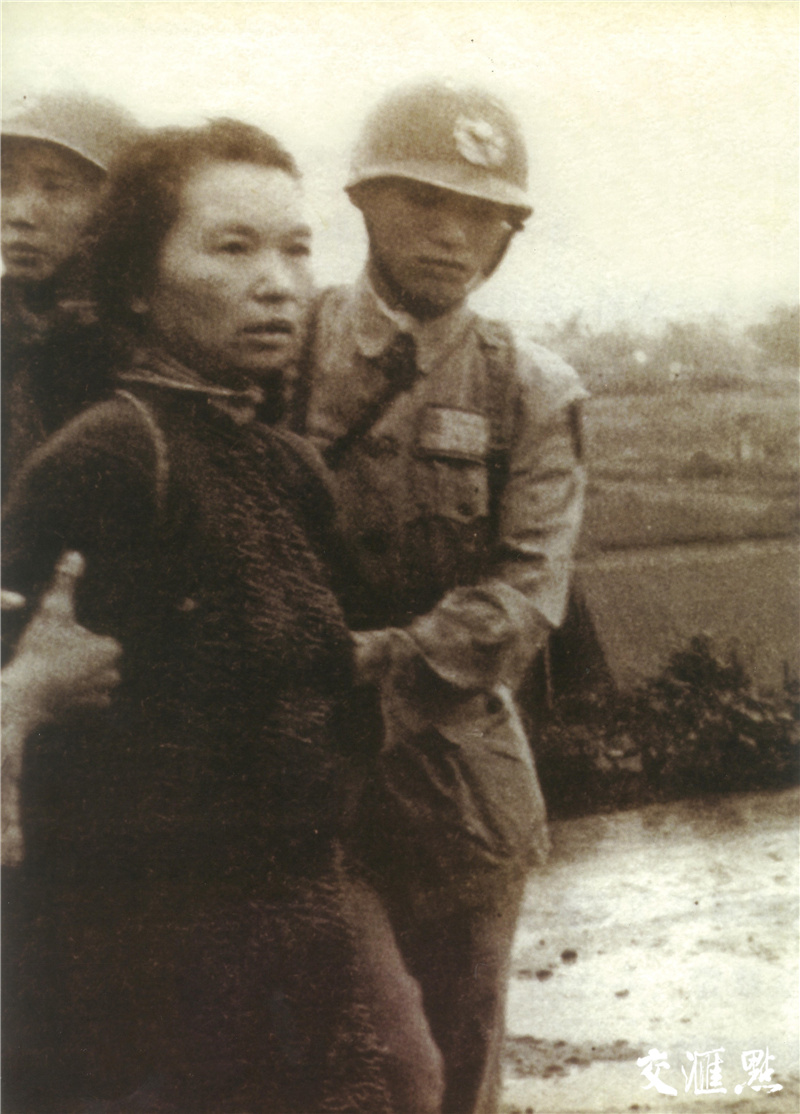 随后一张押送刑场的正脸照片,还是这身衣服,但因被五花大绑而失去了整齐,朱枫双手被拷在身后,两位军警一左一右紧扣她双臂,身后紧跟无数军警。朱枫背颈笔直,面部表情清晰,看不到一丝慌乱失措。