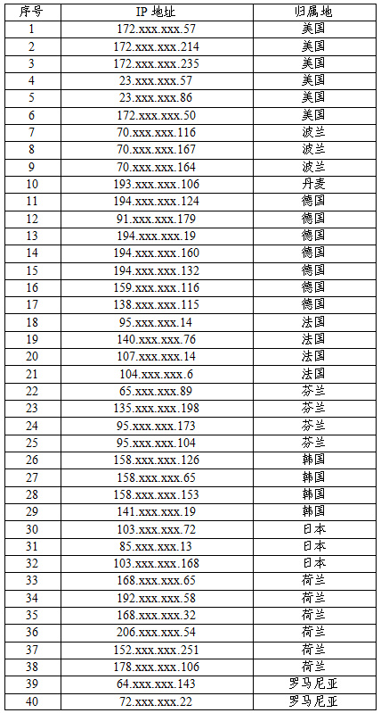 2023年8月至2024年5月,美方用于命令控制的部分服务器IP,如下表: