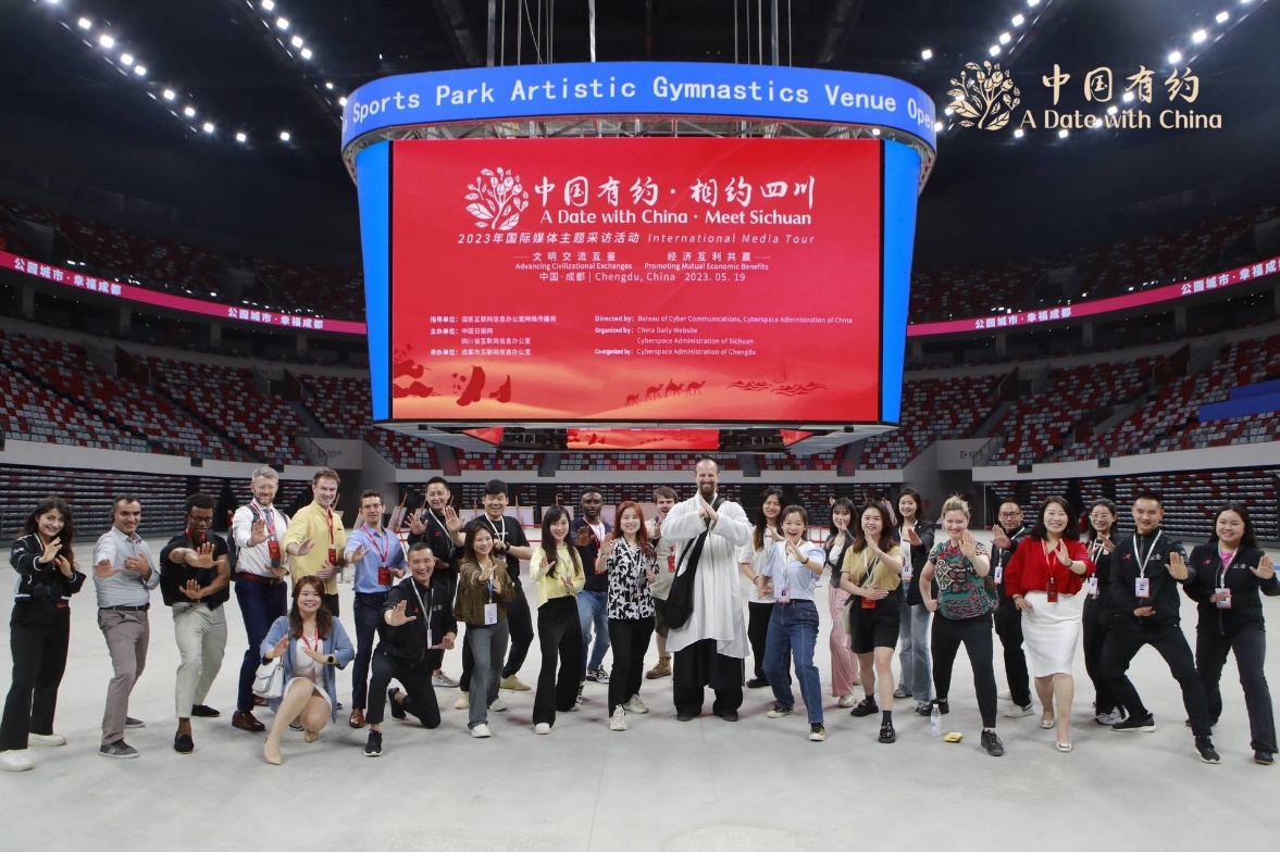 Members of "A Date with China" international media tour visit an event venue of the World University Games in Chengdu, southwestern China’s Sichuan province, May 19, 2023. [Photo/chinadaily.com.cn]