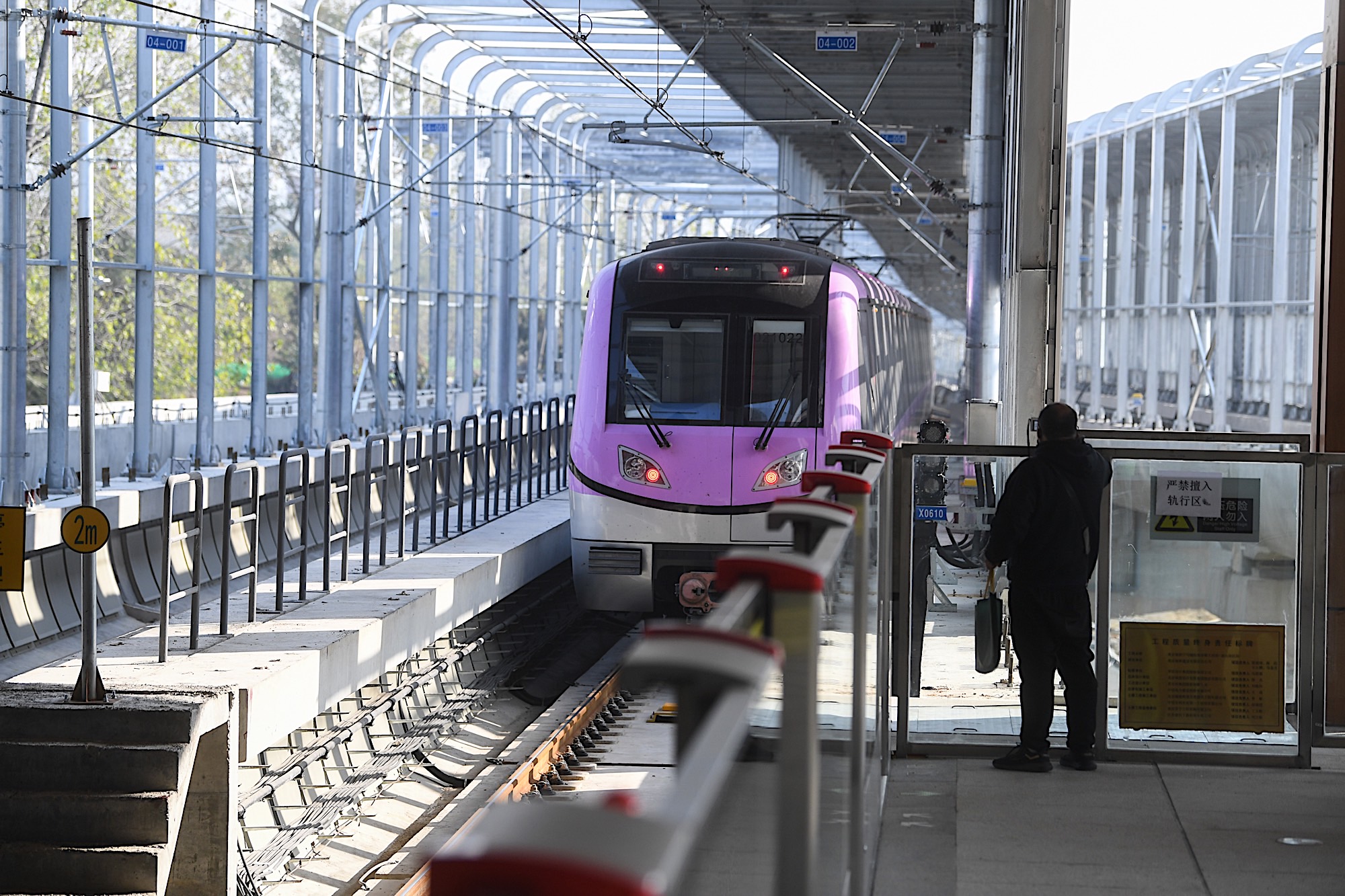 走进宁句城际车厢,记者就被一片明快的紫色吸引。在南京,不同的地铁线路都有自己的“主题色”,如:1号线“小蓝”,2号线“小红”,3号线“小绿”……“宁句城际以‘丁香紫’为主,车身及车厢内部座椅都采用这种颜色,有鲜明的辨识度。”南京地铁建设有限责任公司宁句线工程管理处副处长赵连军说。