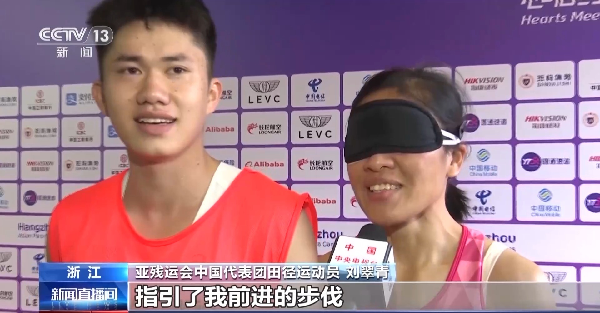 亚残运会中国代表团田径运动员 刘翠青:五月份我跟这名领跑员刚配合,五个月能拿到这个成绩我特别满意。这双“眼睛”特别明亮,指引了我前进的步伐。