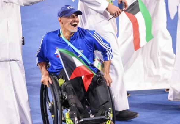 10月22日,杭州第4届亚残运会开幕式的运动员入场仪式上,科威特代表团成员内扎·穆罕默德吸引了观众视线,伴随入场音乐,他灵活地转动轮椅摆出各种动作和志愿者“斗舞”,用灵活的舞姿一路和现场观众互动。他的笑容感染了大家,乐观的心态也感动了大家,随后关于他轮椅舞的视频也迅速在网上刷屏。图源:杭州第4届亚残运会组委会