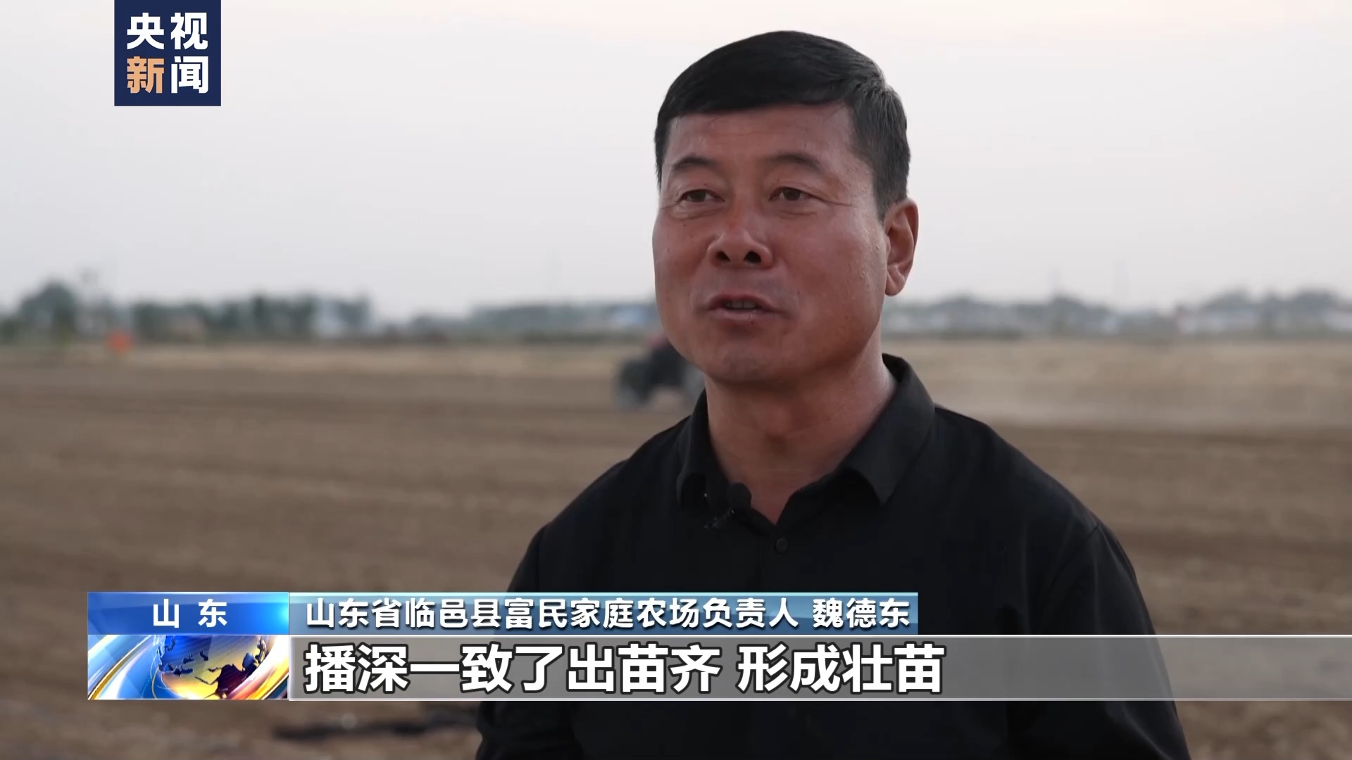 山东省临邑县德平镇富民家庭农场负责人 魏德东:播深一致了出苗齐,能形成壮苗,作业效率比较高,速度比较快,效率是普通播种机的3倍。
