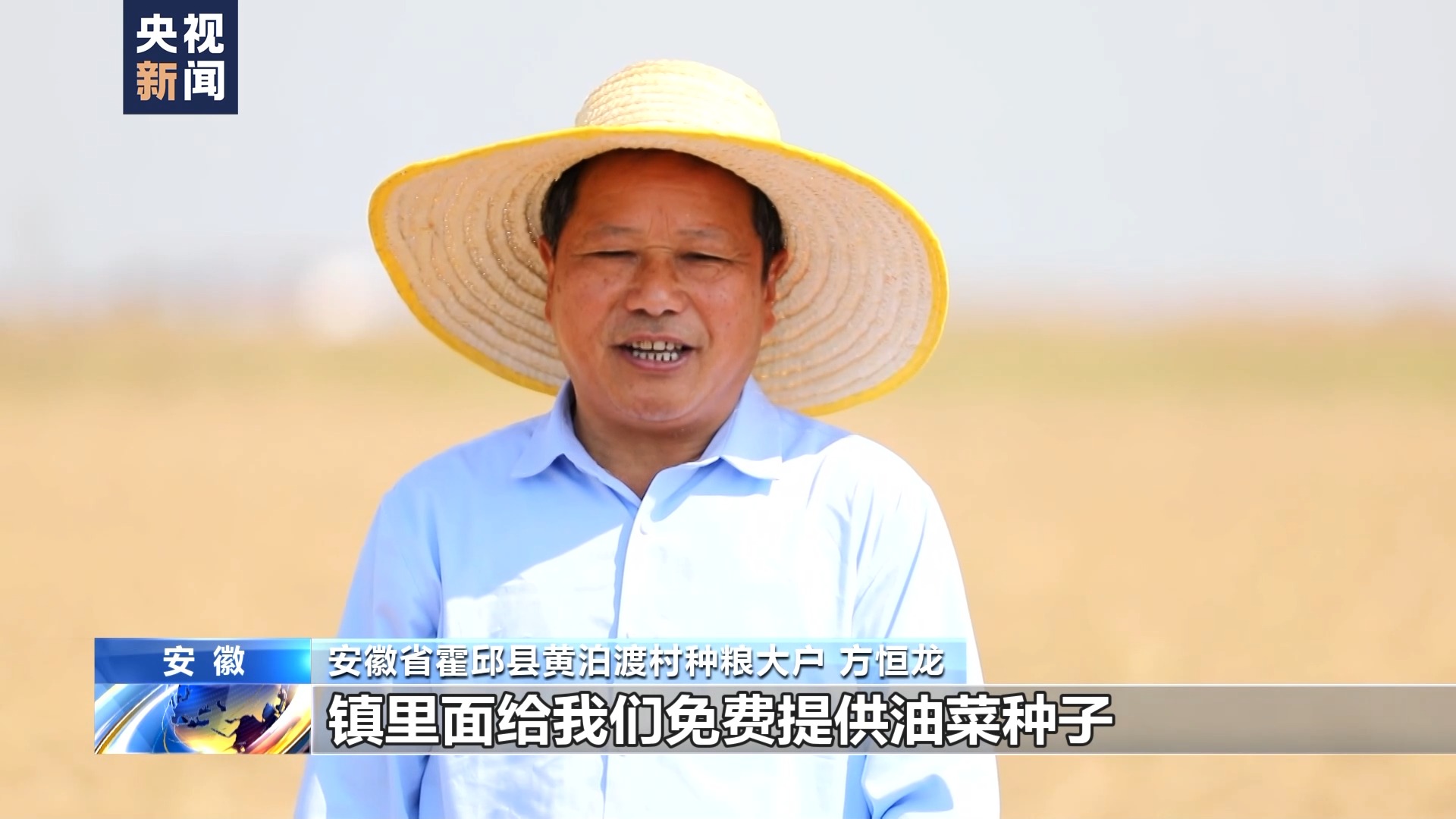 安徽省霍邱县黄泊渡村种粮大户 方恒龙:镇里面给我们免费提供油菜种子,合作社给我们提供机耕、播种、开沟,让我们省时省心又省力,效益也增加了,所以我们对明年的丰收充满了信心。