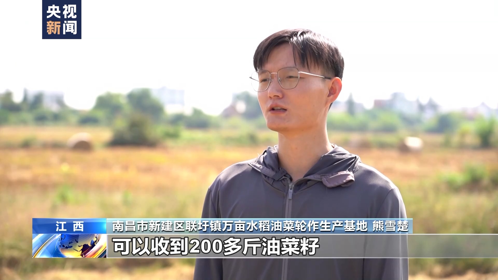 南昌市新建区联圩镇万亩水稻油菜轮作生产基地 熊雪楚:一亩地的油菜种得好的话,可以收到200多斤油菜籽,再加上种水稻的收益,算下来每亩可以增加500多块钱的收入。水稻油菜轮作的模式,对我们增收非常明显。