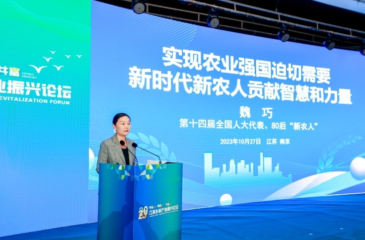 新华报业网讯 科研人、农民、创业者……“新农人”魏巧身上有很多标签。10月27日,在2023江苏乡村产业振兴论坛上,第十四届全国人大代表、江苏润果农业发展有限公司(简称“江苏润果”)董事长魏巧接受了本报专访。