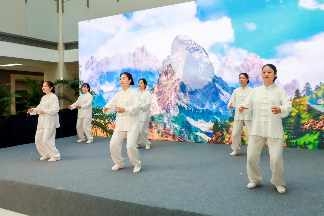随着轻柔舒缓、灵透古雅的音乐声响起,一段气韵生动的八段锦表演,为现场活动拉开序幕。