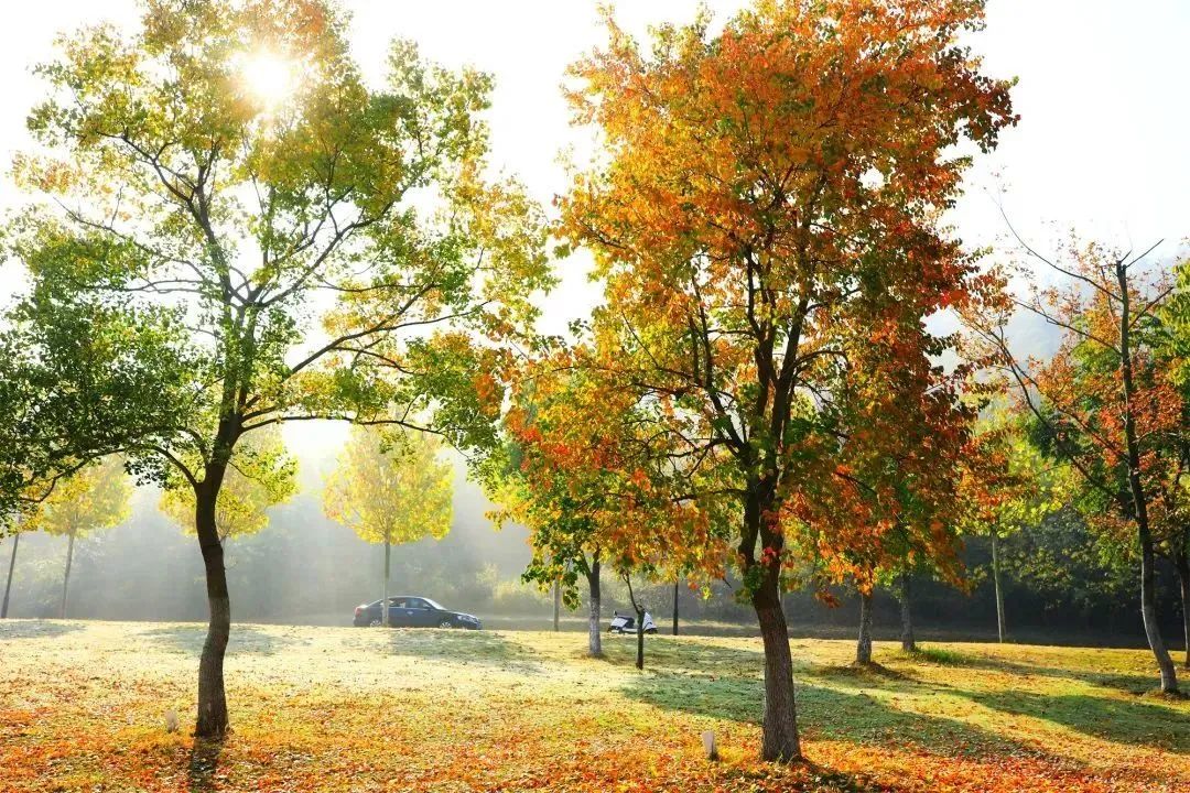 幸庄公园一片黄绿相间,秋风轻轻漫过后,秋色难掩,释放出极致的缤纷!熹微的阳光带着秋日的温情,秋风送来氤氲的水汽和草木的清香。幸庄公园里,各种树叶的颜色变化程度不一,更显得色彩斑斓。