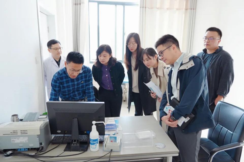 调研组一行深入门诊,实地查看台账,现场操作免费用药“一单制”结算。