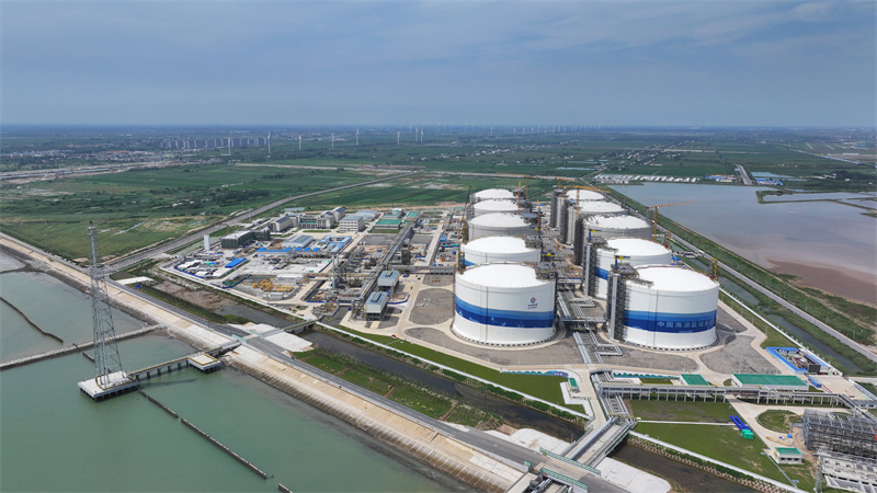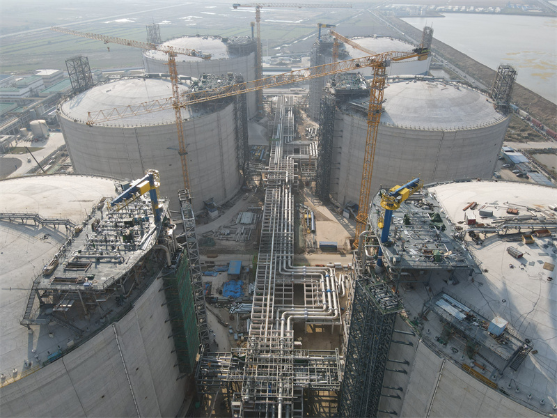 新华报业网讯 日前,中国海油江苏滨海LNG一期扩建工程罐区管廊工艺管道安装完成,标志着全球单罐容量最大的27万立方米液化天然气储罐的“大动脉”顺利连通,为储罐投用奠定坚实基础。