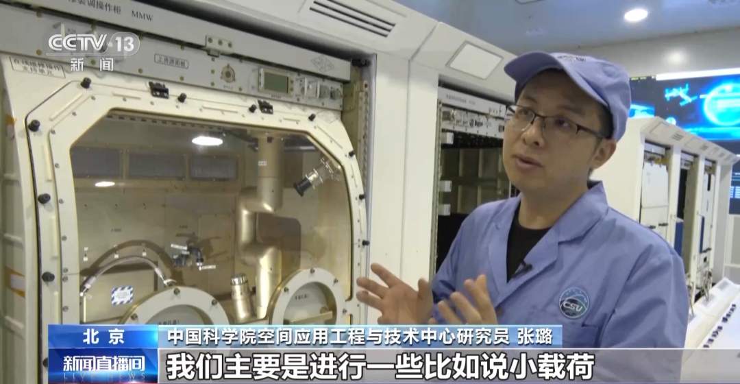 中国科学院空间应用工程与技术中心研究员 张璐:这里面我们主要是进行一些小载荷、标准载荷的维修操作,包括一些有密闭要求的载荷,我们可以通过更换手套进行操作。舱外的大型载荷,它有一些安装、升级,甚至拆装的操作,可以通过把这个平台拉开,展开成一个大概900毫米乘以700毫米的大平板。我的舱外的这些大载荷,可以在这个大平板上安装固定,然后航天员在这个平板上结合我内部丰富的各种载荷的接口,来进行相应的维修操作。