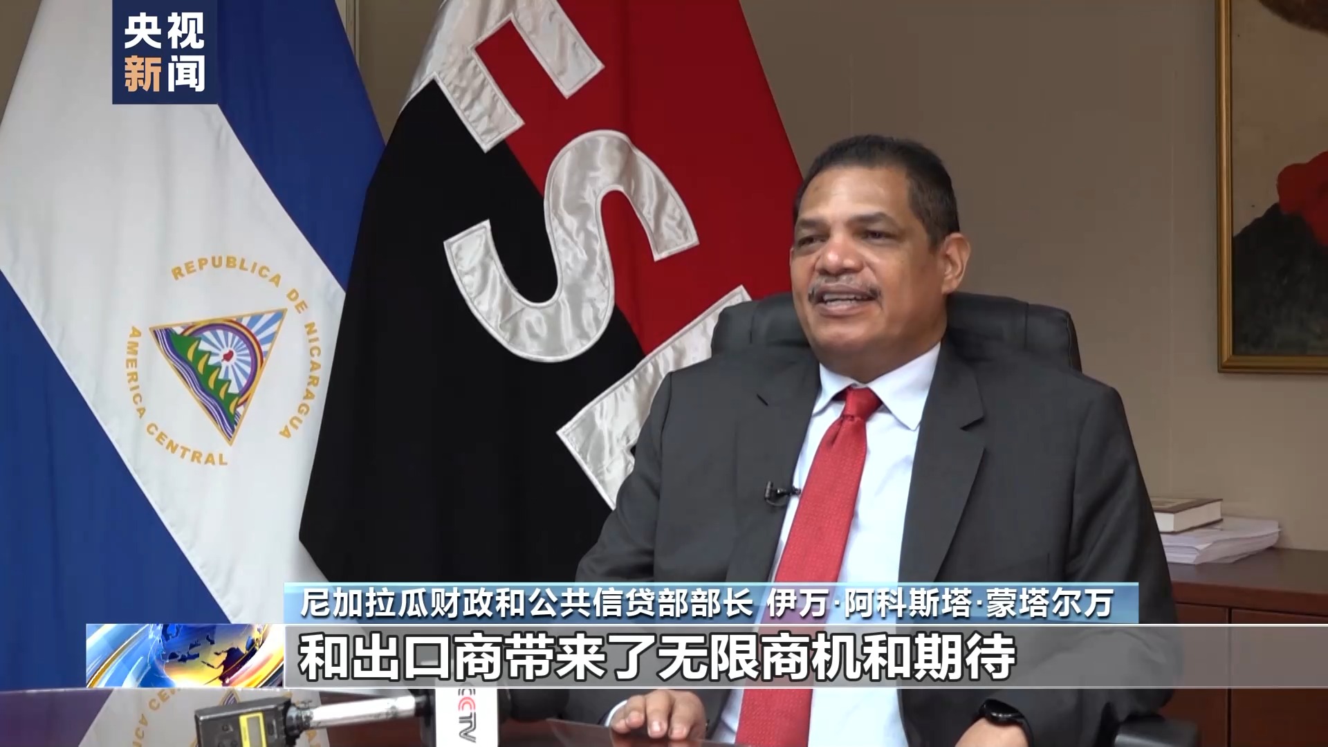 尼加拉瓜财政和公共信贷部部长 伊万·阿科斯塔·蒙塔尔万:进博会为尼加拉瓜贸易商和出口商带来了无限商机和期待,这是他们第一次接触如此巨大的市场,也是尼加拉瓜生产商和经济发展多年来一直期待的机会。