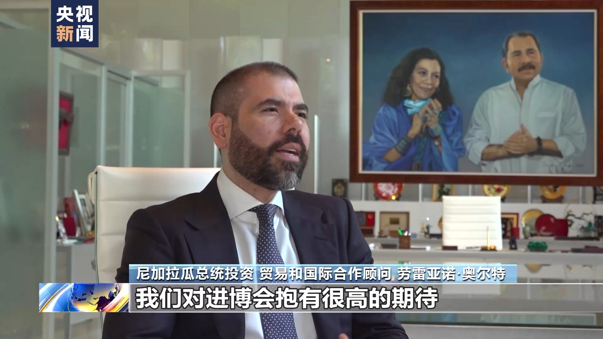 尼加拉瓜总统投资、贸易和国际合作顾问 劳雷亚诺·奥尔特加:我们对进博会抱有很高的期待。我们这次参会主要想从两方面进行推广,首先,希望优质的尼加拉瓜商品能够获得中国市场认可,我们也希望了解中国市场对于我们商品的需求量。另外我们也想借此机会,吸引更多中国企业和企业家来尼加拉瓜投资,比如咖啡种植业、牛肉加工业等。