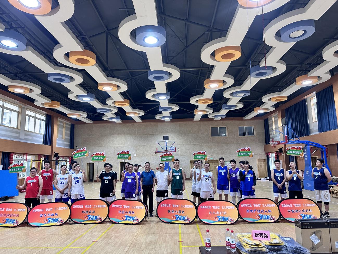 现场呐喊声、助威声此起彼伏,比分交替上升、比赛跌宕起伏,好几场比赛打得难分难解,不到最后一刻始终难分伯仲,更有压哨逆转的好戏上台!每一支队伍都全力争胜,朝着象征光荣与梦想的奖牌奋进,大家不畏强手、奋力搏击。经过一下午的激烈角逐,最终货车司机队获得冠军,快递小哥队获得亚军。