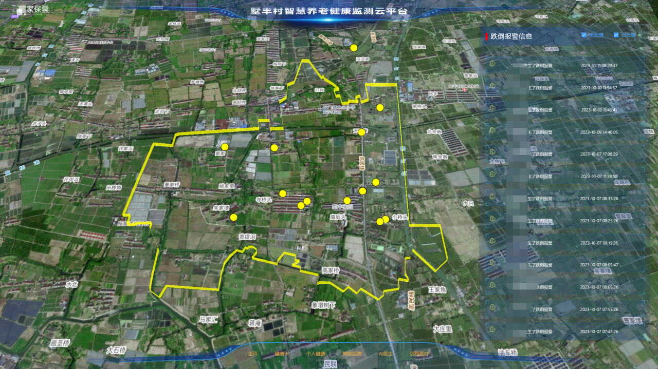 在桐乡石门镇墅丰村,像张新兰一样领到免费智能手环的老人共有131位。“心率87次/分钟、运动记录1500米、血氧饱和度97%。”站在墅丰村智慧养老健康监测预警云平台大屏前,75岁的村民邱明其一脸惊讶,他的身体健康信息可以通过手表实时感知,并且数据可以同时反馈给云平台。如果遇到跌倒的突发情况,平台能够及时接收到预警讯息,快速安排线下救助,让老人多了个全天候的“安全管家”。