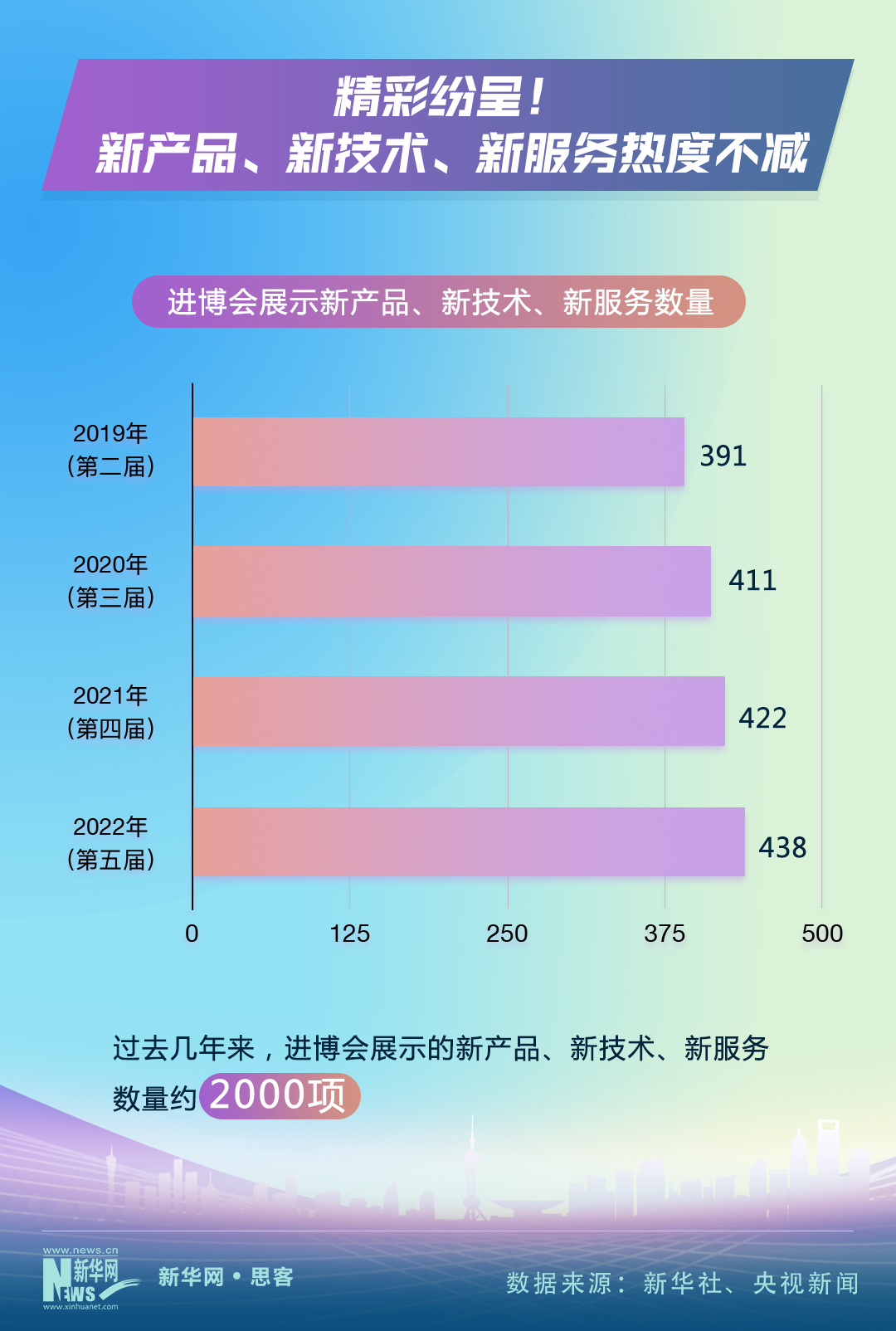 每年进博会,各种新产品、新技术、新服务的亮相总能吸引参会者的眼球。数据显示,过去几年来,进博会展示的新产品、新技术、新服务数量约2000项,历届的数量呈逐年递增的态势。另一方面,参展产品、技术、服务不断迭代升级,多种先进医疗器械、创新药、能源低碳设备、智能工业装备、新能源汽车、高科技美妆产品、高品质食品等也在本届进博会上进行全球首发、亚洲首秀、中国首展。