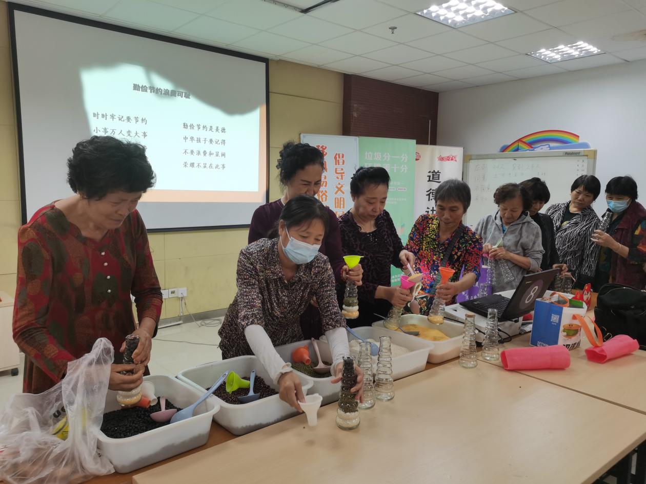 活动伊始,红色管家志愿者向居民们展示了五谷丰登瓶的制作过程,并详细讲解了所需的材料和步骤。大家在巾帼志愿者和青年志愿者的指导下,纷纷开始动手制作,从最初的五谷摆设,到后来的粘贴、塑形,每一个环节都精雕细琢,一丝不苟。
