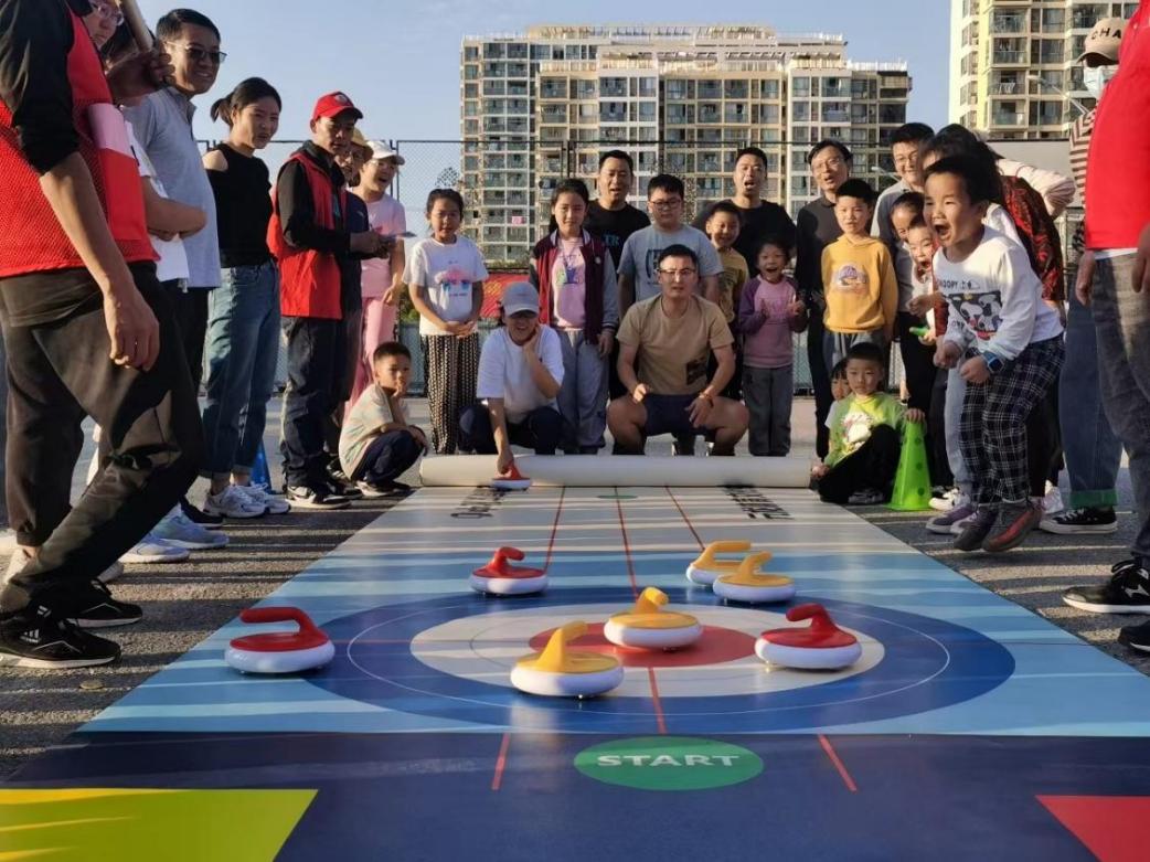 家庭抽签后,一场别开生面的运动会正式开始,社区结合小朋友年龄特点设置了强趣味性、若竞争性的游戏环节,包括“快乐套圈”“摸石过河”“金豆搬家”“旱地冰壶”和“铁环接力”等项目,参赛家庭需要家长和孩子相互配合,共同在规定的时间内完成比赛,获得比分。场上的家长和孩子们争分夺秒认真比赛,趣味十足的亲子游戏,幽默诙谐的动作让人忍俊不禁,比赛环节一个接着一个,加油声、呐喊声、欢呼声沸腾了整个运动场。同时,社区工作人员及红管志愿者向在场家长宣传垃圾分类、反电诈、惠民政策等内容。