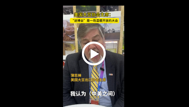 美国大豆出口协会主席薄思禅是第一次来参加进博会,他告诉记者,协会是进博会的“铁杆粉丝”,今年他们还牵头组织代表团参加进博会。他在接受中国日报网采访时表示,进博会是一场温暖开放的大会,会议的基调非常愉悦,这让他深受鼓舞。