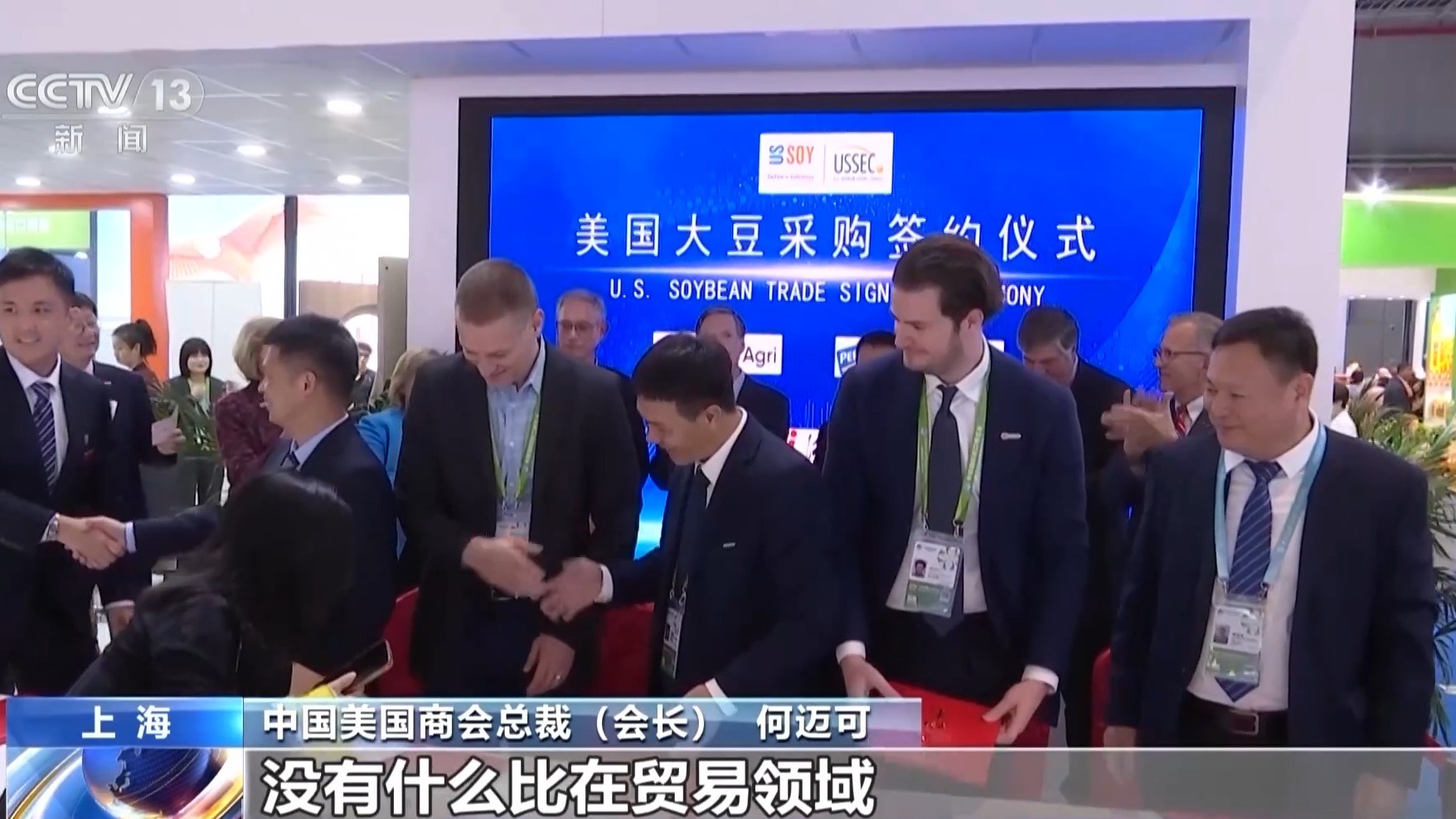 中国美国商会总裁(会长) 何迈可:进博会让大家看到了贸易所带来的机遇。我很高兴看到美国企业和其他外国企业选择在这里展示商品,因为他们看到了中国市场的重要。 国际贸易让我们受益,祝福进博会,来自中国美国商会。