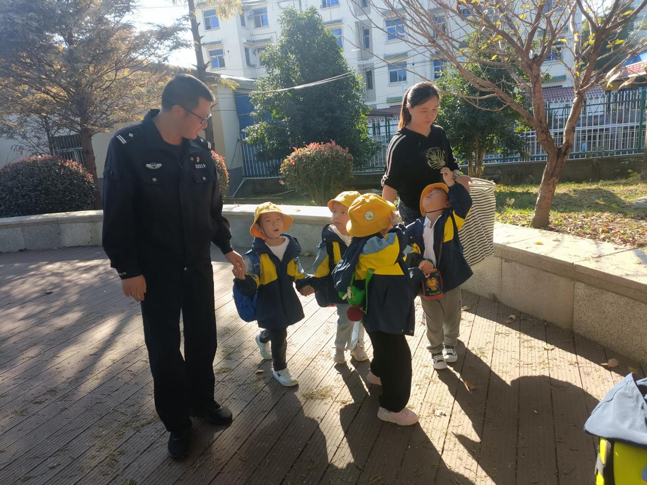 日前,砖墙镇中心幼儿园组织小班30余名小朋友到集镇法治文化广场开展秋游活动。为确保活动安全顺利进行,砖墙派出所负责人带队组织5名警力全程徒步“保驾护航”。