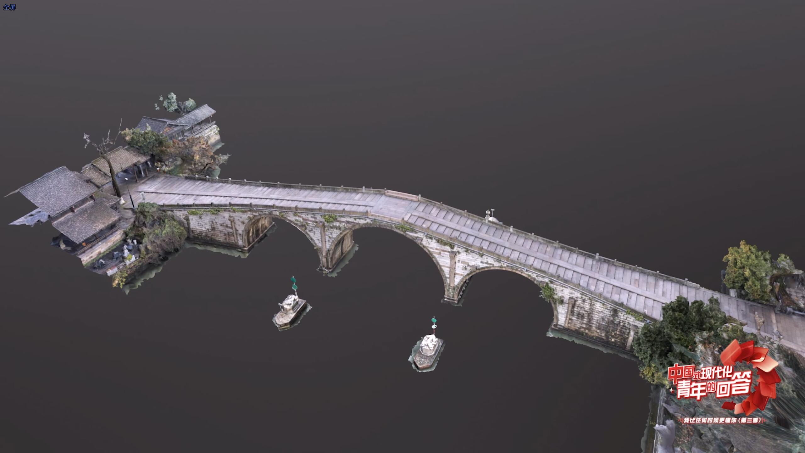 千年运河,生生不息。在2023杭州亚运会开幕式上,裸眼3D技术构筑的拱宸桥跃然于运河之上,连接古今,惊艳世界。392岁的拱宸桥长约92米,是京杭大运河最南端的标志。为了让这处大运河遗产点“活”起来,杭州市京杭运河(杭州段)综合保护中心联合浙江大学开展了拱宸桥数字化保护项目。浙江大学文物数字化团队使用了无人机、相机、大场景三维激光扫描仪等多种设备,通过数据采集、数据处理、3D建模、制作三维动画等,将拱宸桥搬到了数字世界,还原了它的“前世今生”。