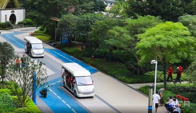 志愿者驾驶电动车接送运动员(央广网记者 梁瑜琳 摄)