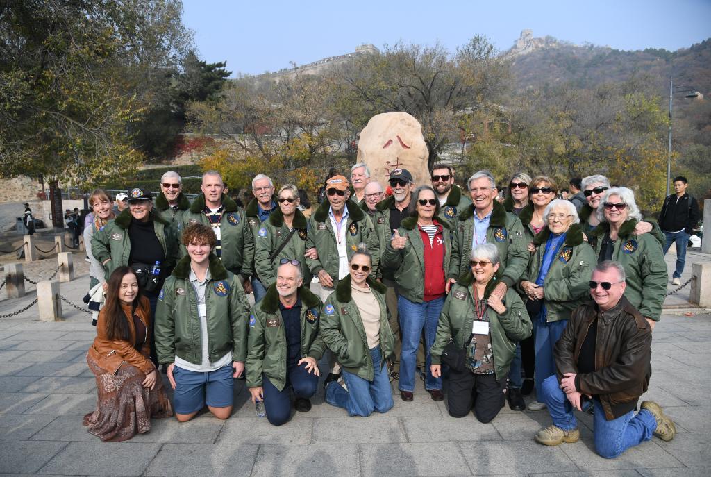 10月29日,飞虎队老兵莫耶一行人在北京八达岭长城合影留念。