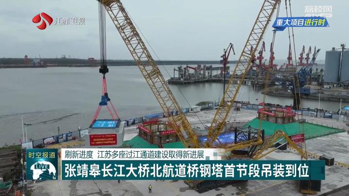 【张靖皋长江大桥北航道桥钢塔首节段吊装到位】