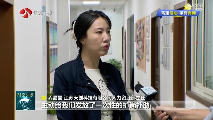 江苏天创科技有限公司人力资源部主任乔晶晶说,目前公司有300多名员工,人社部门通过系统比对到了录用信息,主动发放了一次性扩岗补助,大大降低了公司经营的成本压力。