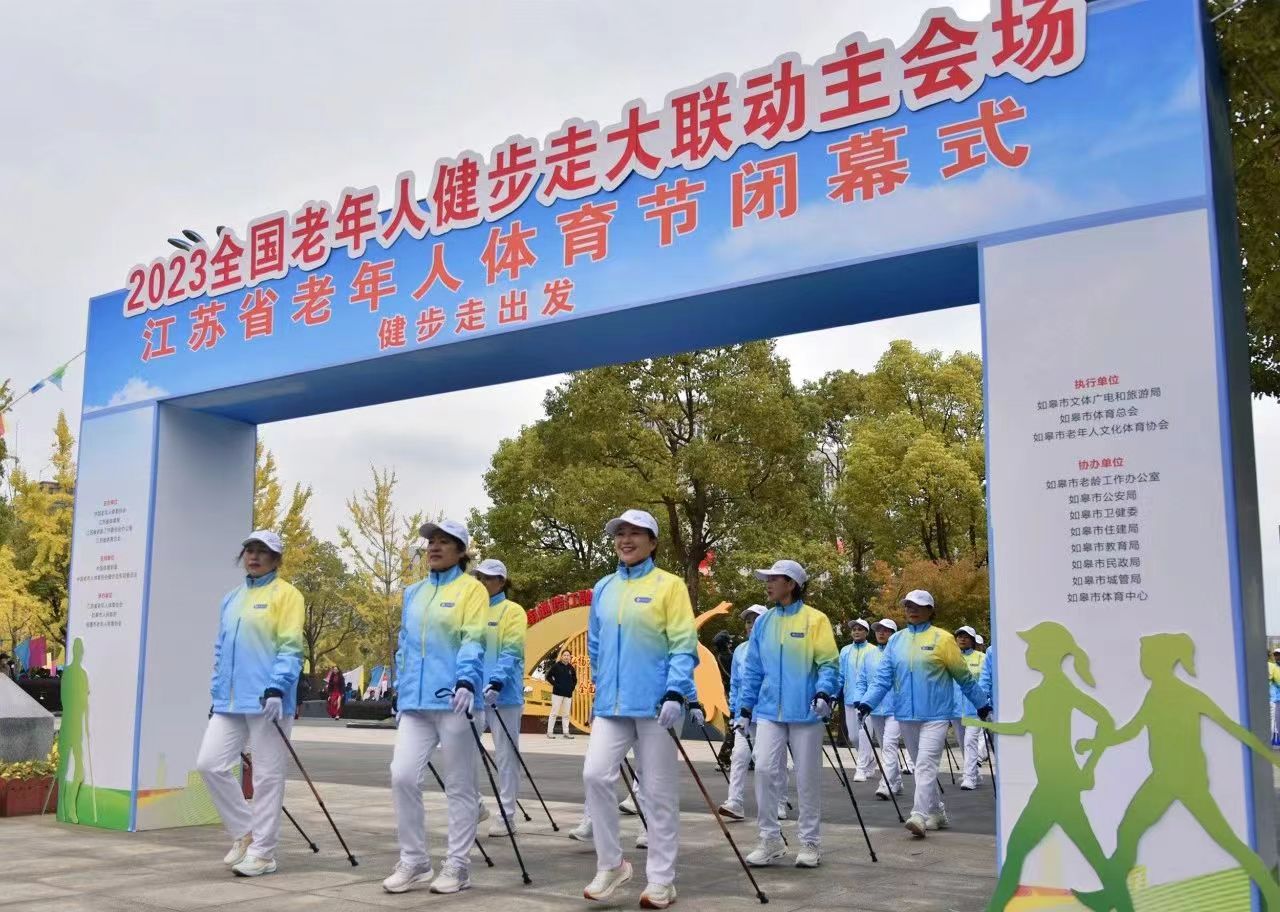“迈开双腿 健康你我”,2023年11月11日,在长寿福地南通如皋龙游河水上大平台迎来了“2023年全国老年人健步走大联动主会场启动暨2023年江苏省老年人体育节闭幕式”盛大活动。此次活动由中国老年人体育协会、江苏省体育局、江苏省老龄工作委员会办公室和江苏省体育总会主办,江苏省老年人体育协会、如皋市人民政府、南通市老年人体育协会承办。