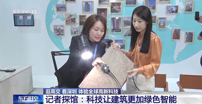 总台央视记者 任梅梅:科技将会给我们未来建筑带来什么样的改变呢?在高交会的现场,我们看到了这样一款看似普通的建筑面材,但其实它是一款经过特殊设计、非常环保的零碳建筑面材,当它融合了光电技术之后,可以发电,还可以变身成为显示屏,这也是这项技术首次走出实验室,在高交会上与大家见面。
