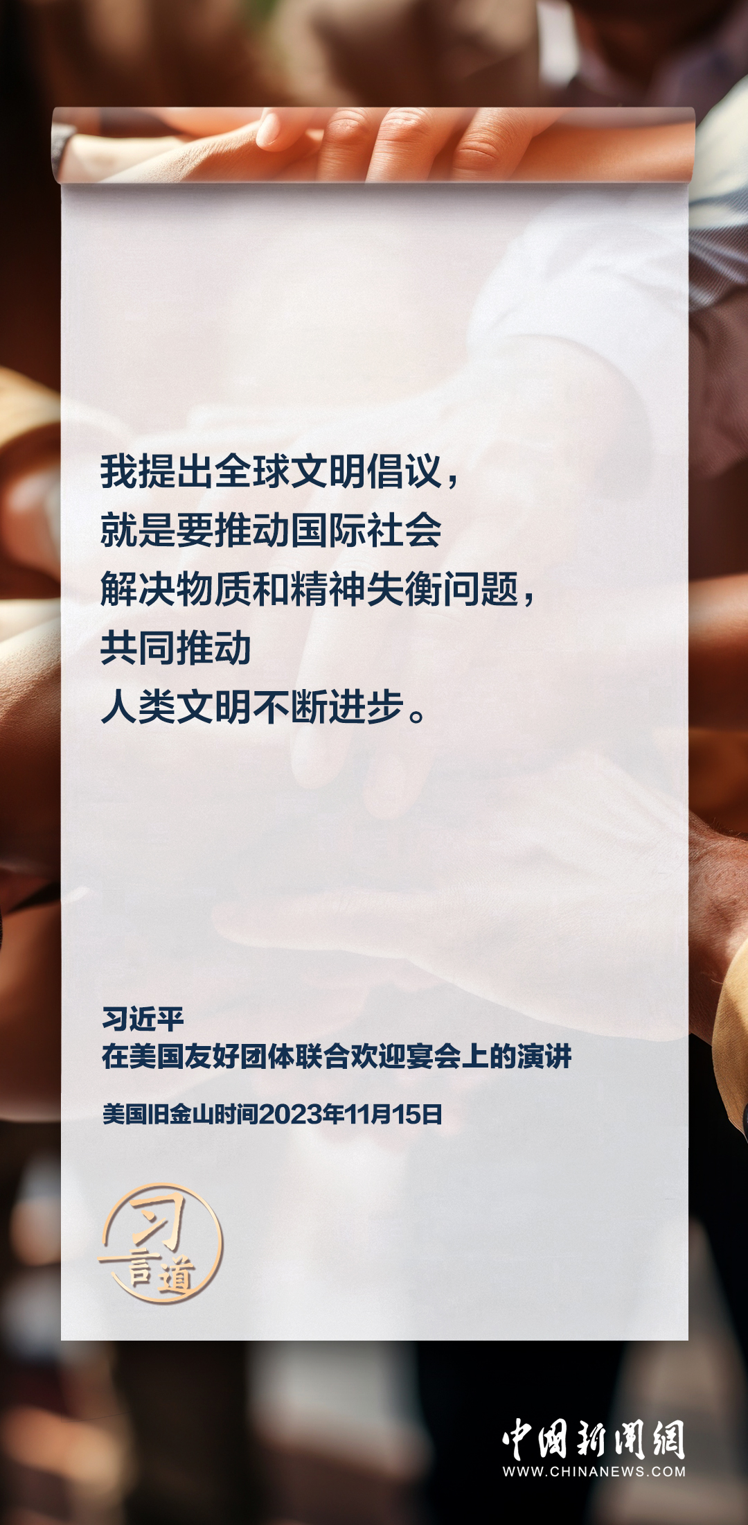 当地时间11月15日,中国国家主席习近平在美国旧金山出席美国友好团体联合欢迎宴会并发表演讲。习近平在演讲中从“我”和“我们”说起,提出中国主张、表明中国立场、展现大国担当,话语掷地有声。