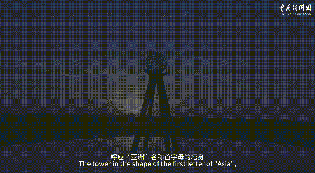 “亚心”亦拥有深刻的文化内涵。塔身双手托举地球的造型,呼应亚洲“Asia”首字母的结构,寓意亚洲之心。环绕的亚洲48国国旗和地图,中心大道两旁林立的亚洲各国文化雕塑,寓意多元文明的共融互通、共同进步。北大门钢制网架结构如雄鹰展翅,寓意亚洲兴旺发展。(参考图7)。