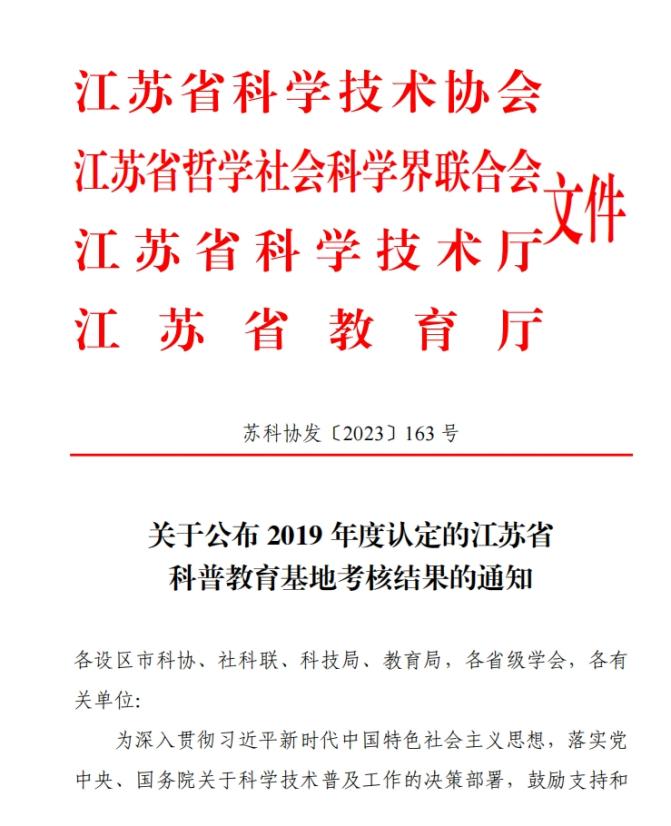 根据江苏省哲学社会科学界联合会、江苏省科学技术协会、江苏省科学技术厅、江苏省教育厅联合下发的《关于申报2023年度江苏省科普教育基地的通知》(苏科协发〔2023〕95号)要求,经自主申报、相关单位推荐、专家评审、公示等程序,该馆被2023年省社科普及基地复评创建领导小组认定为省社科普及优秀基地,排名盐城市第一,是盐都区唯一的省社科普及基地。