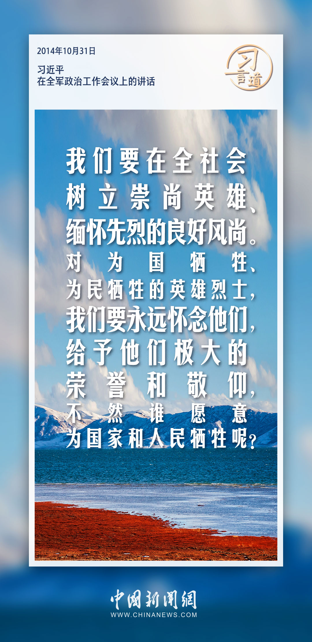 一个有希望的民族不能没有英雄,一个有前途的国家不能没有先锋。习近平总书记在多个场合深切怀念革命先烈、革命烈士,强调要饮水思源,不要忘了革命先烈,不要忘了党的初心和使命。