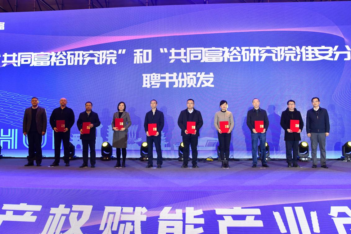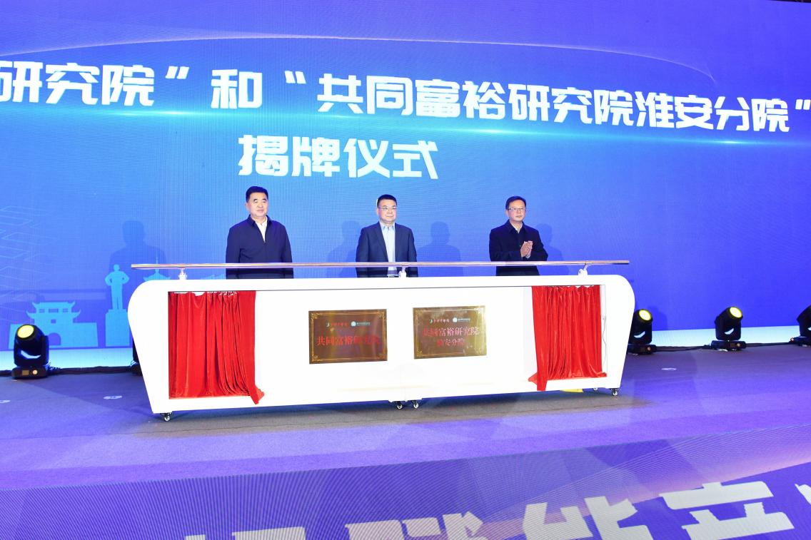 会上,新华日报社党委委员、副总编辑郑泽云和淮安市政协副主席、民盟淮安市委主委毕丰书,淮安市市场监督管理局党委委员、市知识产权局副局长胡明东为“共同富裕研究院”和“共同富裕研究院淮安分院”揭牌。