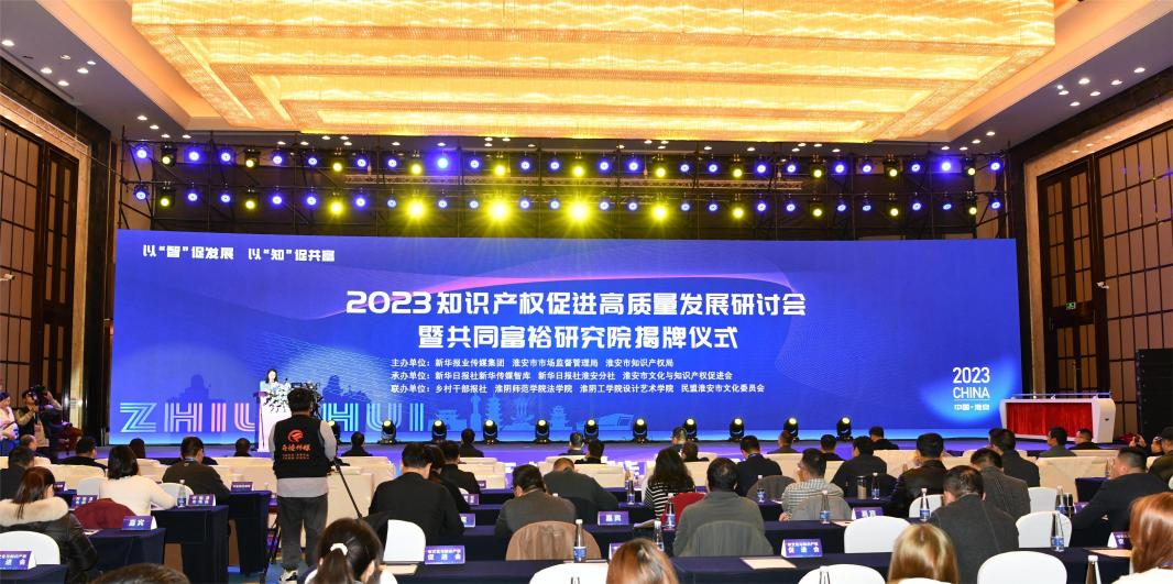 交汇点讯 11月24日下午,2023知识产权促进高质量发展研讨会暨“共同富裕研究院”揭牌仪式在淮安举行。本次研讨会围绕“以‘智’促发展 以‘知’促共富”,汇聚了众多专家学者、业界精英、行业翘楚,为知识产权赋能产业创新、促进高质量发展建言献策。