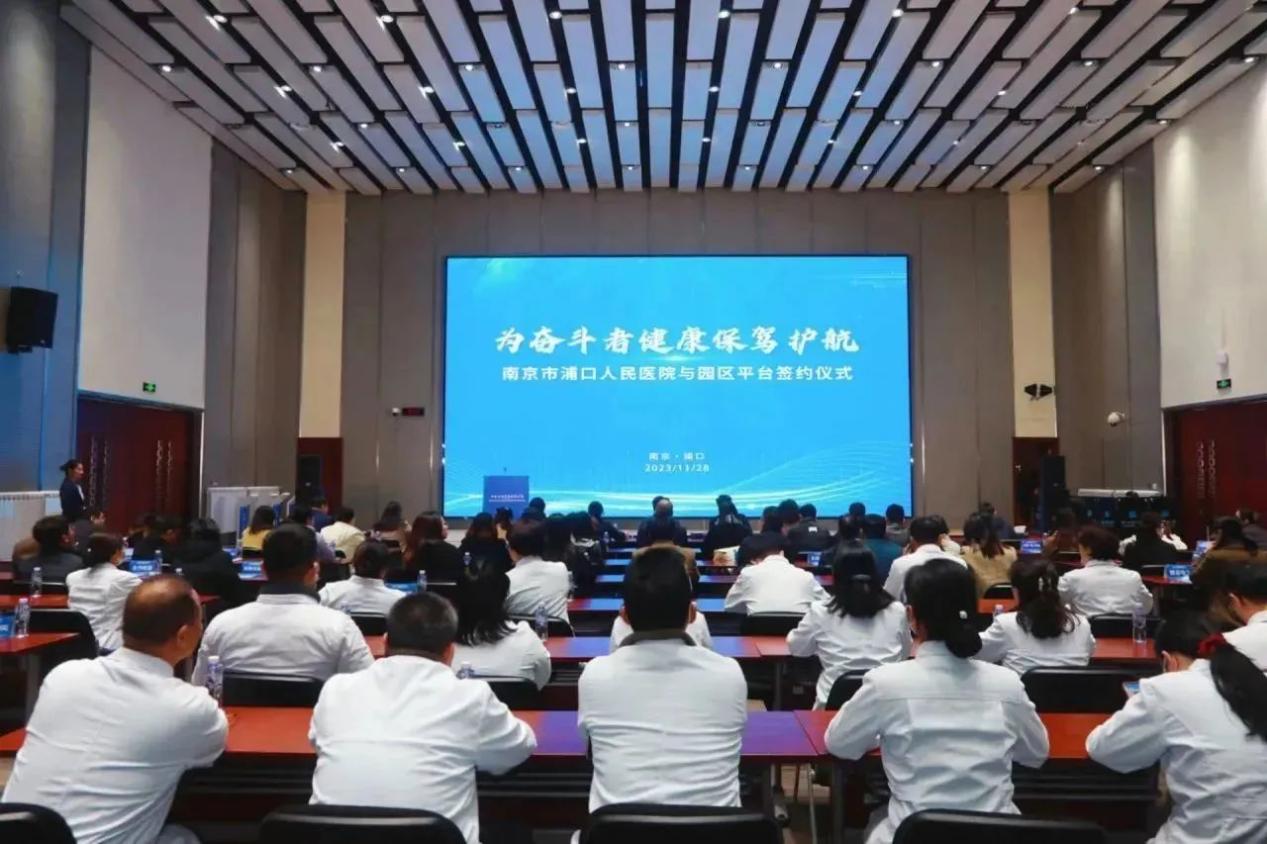 11月28日,南京市浦口人民医院与浦口开发区、浦口高新区、浦口农创中心、南京珍珠泉度假区等园区平台共同举办“为奋斗者健康保驾护航”健康服务签约仪式,以促进优质医疗资源下沉,进一步优化园区营商环境,切实保障企业职工的身心健康。