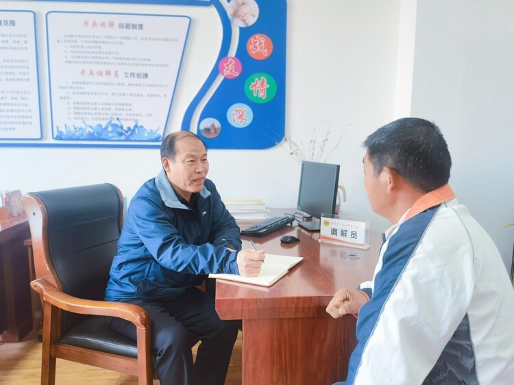 老兵“扛旗”激活老兵资源,配好矛盾化解“金钥匙”。“谢谢老战友了,我心里的石头终于能落地了!”退伍老兵赵某某(化名)眼中含泪,紧紧拉着调解员王海林的手舍不得放开。原来,赵某某在退伍后曾担任过7年民办教师,因未通过资格考试被辞退。近年来国家出台相关政策,对退休及被辞退的民办教师每月给予生活补贴,赵某某符合条件,但补助一直未得到落实。在王海林和同事的多方奔走下,问题终于在近日“圆满”解决。