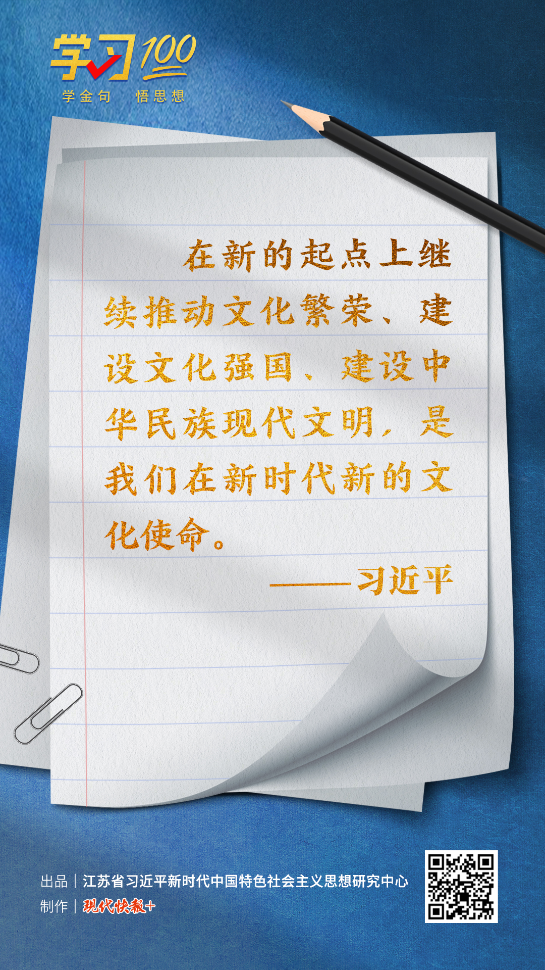 在新的起点上继续推动文化繁荣、建设文化强国、建设中华民族现代文明,是我们在新时代新的文化使命。