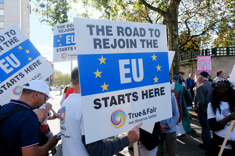 当地时间11月29日,英国舆观调查公司公布的一项民意调查结果显示,57%的英国民众支持英国重返欧洲联盟单一市场。