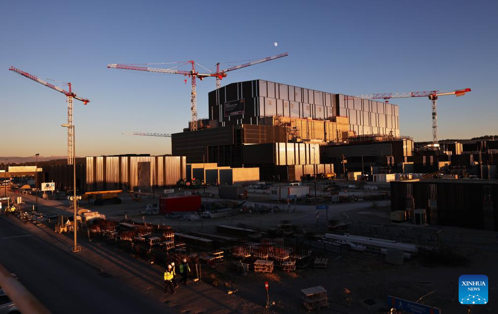 This photo taken on Nov. 23, 2023 shows the assembly building on the construction site of the ITER Tokamak, the world's largest fusion experiment machine, in Saint-Paul-lez-Durance, France. (Xinhua/Gao Jing)