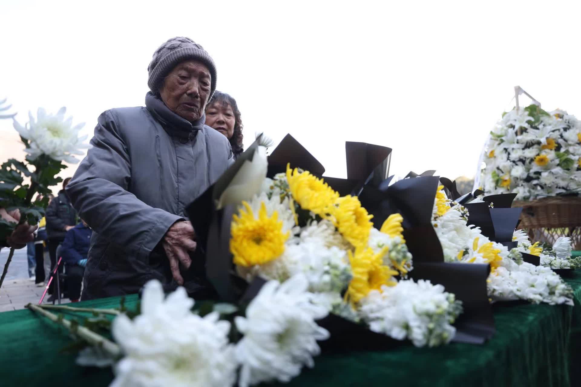 今年89岁的南京大屠杀幸存者刘民生今天来缅怀在南京大屠杀期间遇难的亲人和被无辜屠杀的同胞。回忆起家族在南京大屠杀的经历,他充满沉重。1937年,刘民生年仅3岁半,父母带着他躲到了难民区。即便如此,日军依然强闯难民区将刘民生的父亲抓走,还朝着刘民生刺了一刀,至今右腿上还留有伤疤。父亲被抓走后,家里失去了主要的经济来源,全家过着非常艰苦的日子。“南京大屠杀彻底改变了我的人生轨迹。在这之前,我的父亲是一名警察,家庭和美,我也原本可以受到很好的教育。我希望全世界人都能了解南京大屠杀史实,让历史不再重演。”刘民生说。