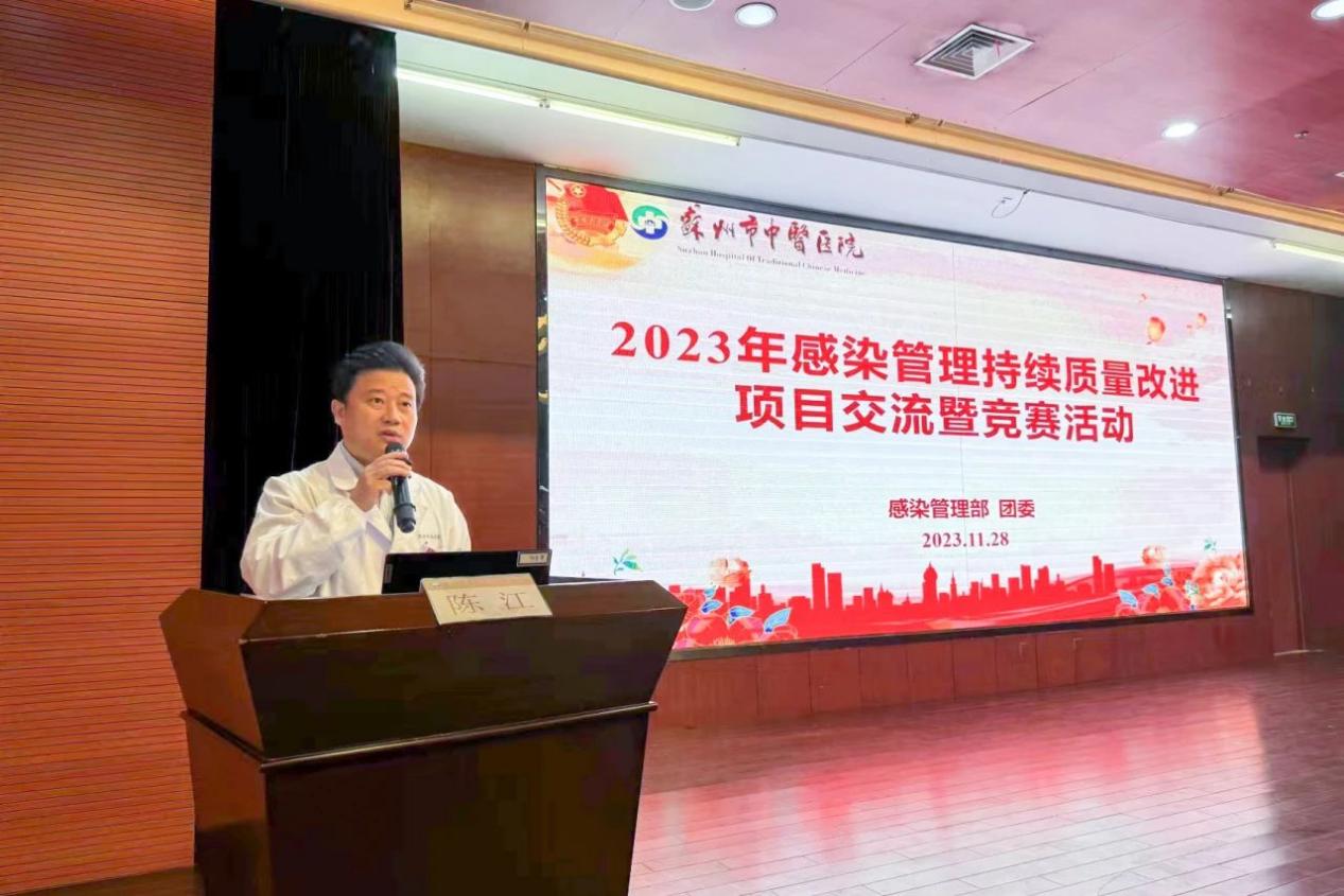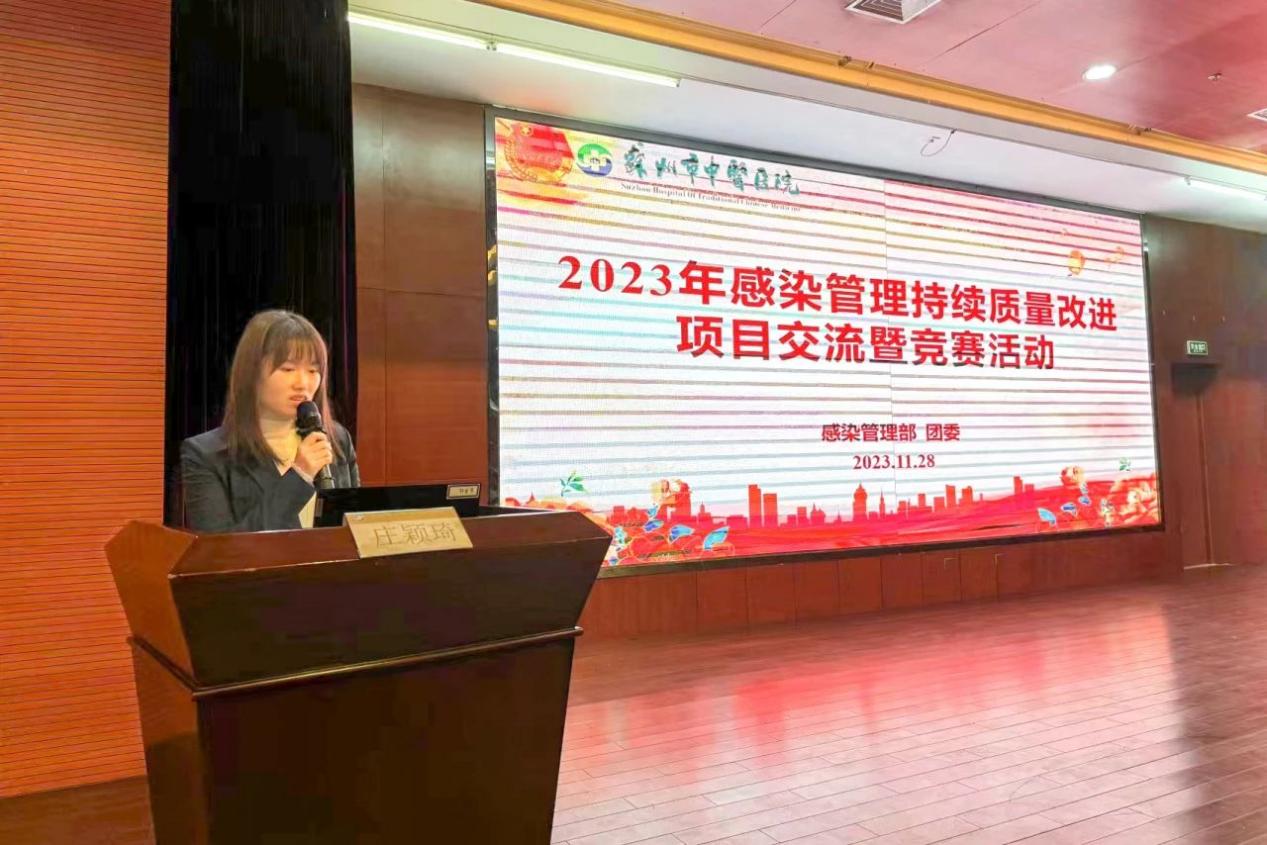 近日,苏州市中医医院在西楼21楼佩兰厅举办感染管理持续质量改进项目交流暨竞赛活动。苏州市中医医院党委副书记马莉,副院长陈江,苏州市卫生健康委团委书记庄颖琦出席,苏州市院感质控中心副主任张骏骥、苏州市中医医院感染管理部副主任蔡丽梅、医务部副主任陶秋垚,团委副书记皋青青,护理部护士长俞琴担任评委。