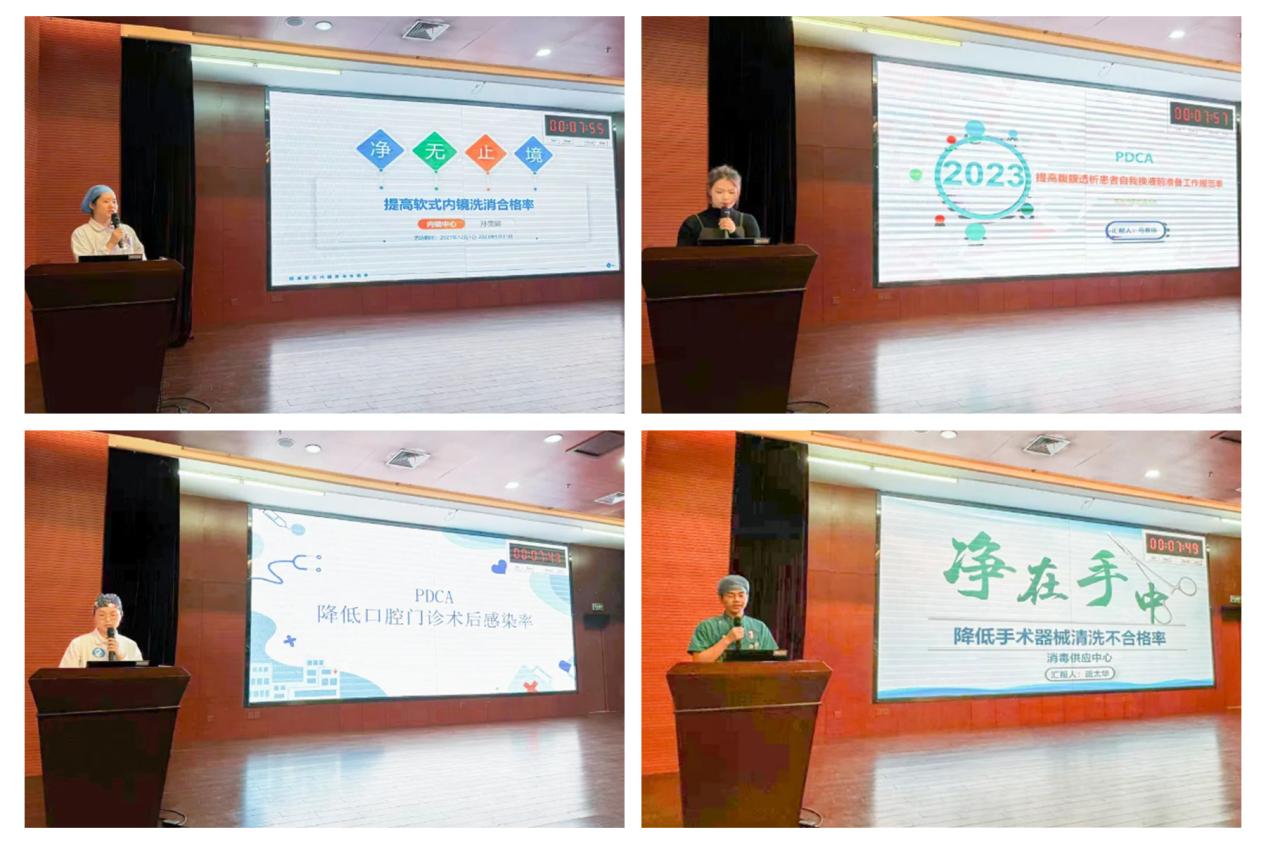 本次活动共有来自手术室、血透室、内镜中心、消毒供应中心、ICU等九支队伍进行决赛,每支队伍通过8分钟PPT讲演阐述在感染管理质量改进中的所做工作及取得的进展,最终评委综合打分,决出一、二、三等奖。