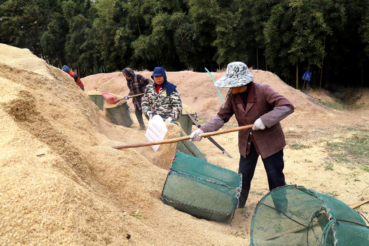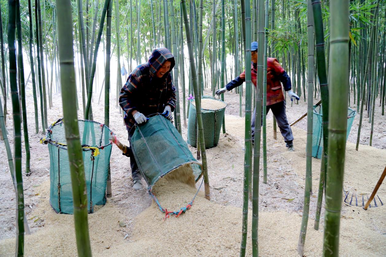 据悉,早园竹栽植是桠溪街道特色富民产业。眼下正是初冬时节,为确保早园竹笋丰产增收,当地笋农加紧采用稻壳覆盖控制地表温度。据早园工作人员介绍,通过稻壳覆盖控温可让竹笋提前上市,平均亩产量为2000公斤左右。