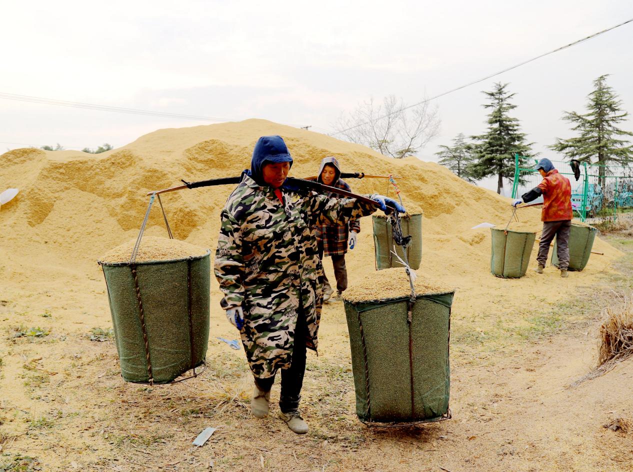 12月6日,在高淳区桠溪街道瑶宕村早园竹生产基地内,工人们正在早园竹地里覆盖稻壳。
